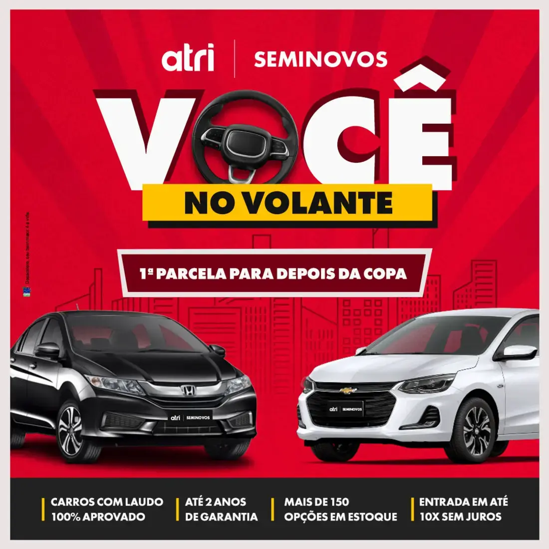 Você no volante - Atri Seminovos - 1 parcela para depois da copa